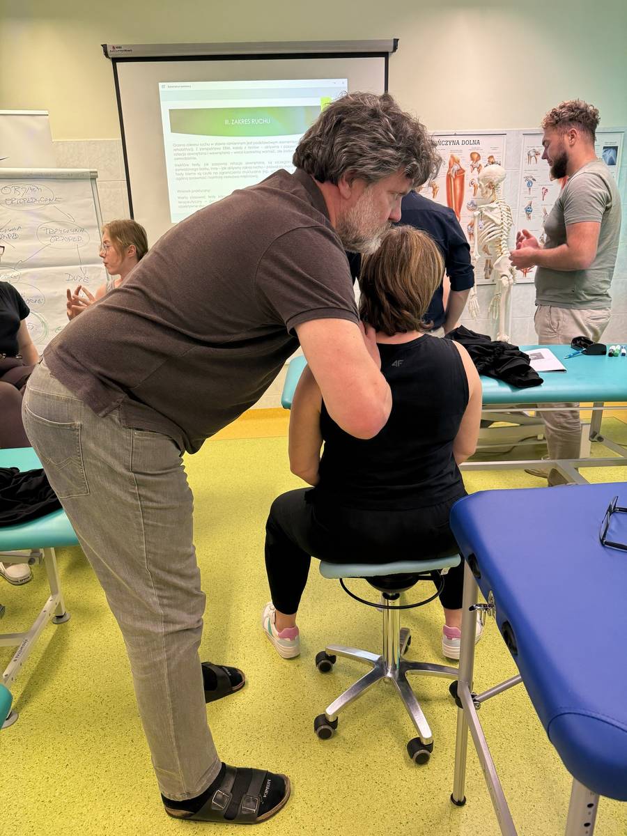 Studenci zapoznali się ze specyfiką pacjenta neurologicznego w różnych schorzeniach neurologicznych oraz mieli również okazję zobaczyć egzoszkielet i jego praktyczne zastosowanie.