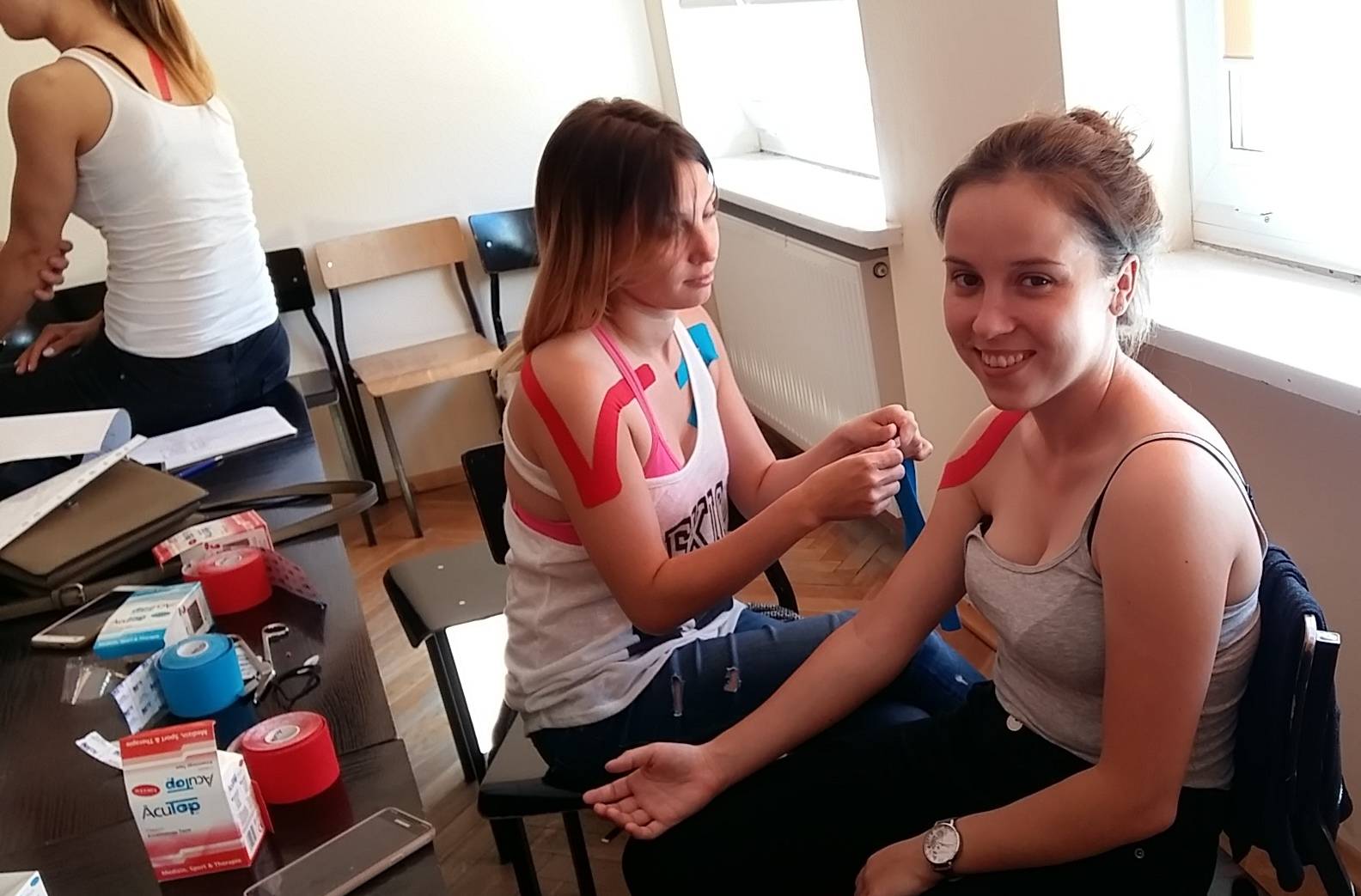 W ramach projektu unijnego „Rozwój kwalifikacji i kompetencji studentów Państwowej Wyższej Szkoły Zawodowej w Koszalinie” zadanie 3 – „Certyfikowane szkolenia zawodowe” studenci uczestniczą w kursie KINEZJOTAPINGU.