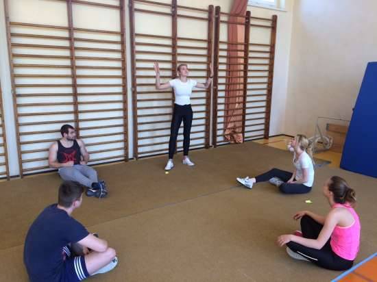 W ramach projektu unijnego „Rozwój kwalifikacji i kompetencji studentów Państwowej Wyższej Szkoły Zawodowej w Koszalinie” zadanie 3 – „Certyfikowane szkolenia zawodowe” studenci uczestniczą w kursie instruktora rekreacji ruchowej w dziedzinie KINEZYGERONTOPROFILAKTYKI.
